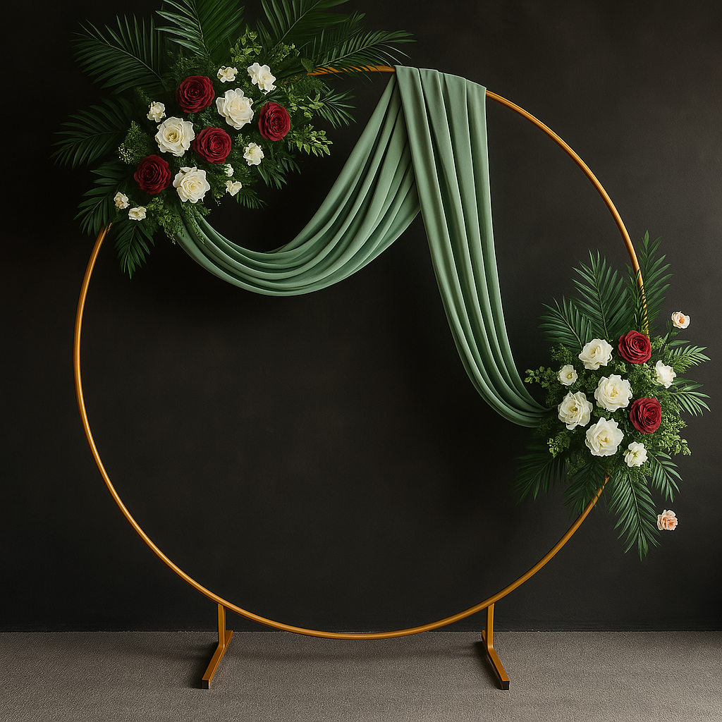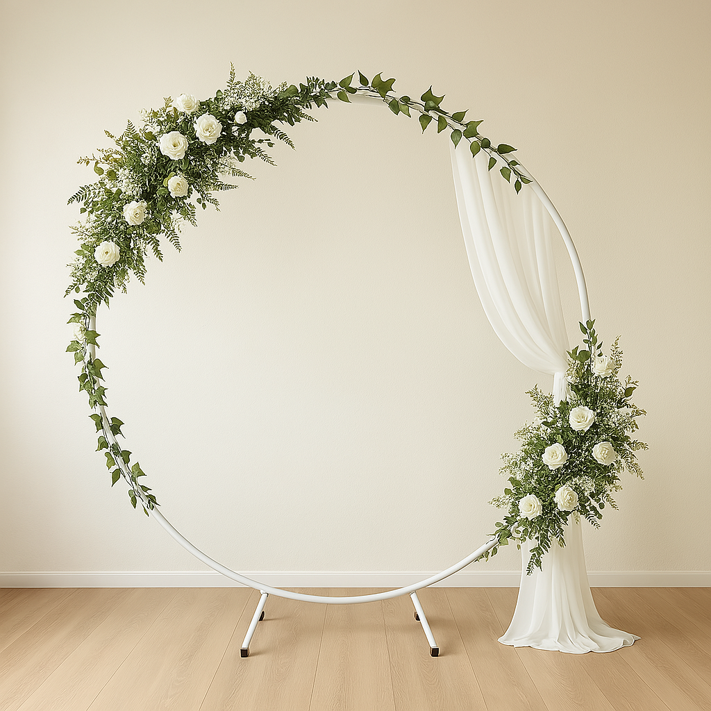 Ajoutez une touche de magie à votre mariage avec notre arche ronde, parfaite pour la cérémonie ou les photos.