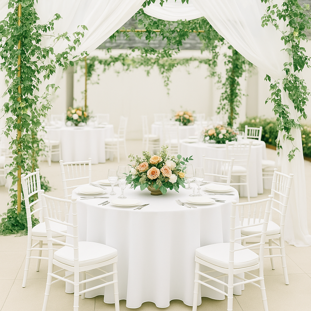 Offrez à vos invités le raffinement d'une assise d'exception avec notre Chaise Chiavari blanche, pour un souvenir inoubliable de votre événement.